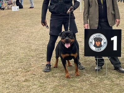 His powerful build, flawless movement, and commanding presence make him an undeniable force in competition, while his stable, confident, and loyal temperament ensures he is just as remarkable outside the ring. With a strong head, rich mahogany markings, and a structurally correct frame, Cobe exemplifies everything a top-tier Rottweiler should be.
